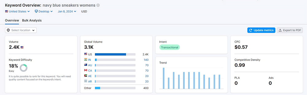 You can use tools like Semrush and Ahrefs to find keywords related to your products. These tools will give you a breakdown of the monthly search volume and how competitive the keywords are. You'll also get a list of related keywords to help you find more terms to target.