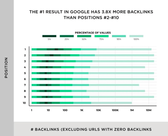 Backlinks have a significant impact on search engine rankings. According to Backlinko, the top result in Google search results has 3.8x more backlinks than positions 2-10 on average.