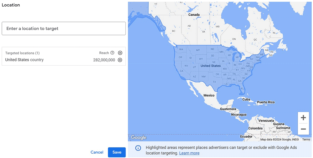 When you're paying for every click, it's really important that you get your targeting right. The first thing you want to do is set a location. This will restrict your ads to users based in the markets where you sell your products.