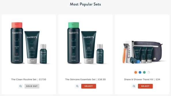 Think about the products that naturally go together. For example, Harry's creates bundles with shower gel, face wash, and moisturizer. The products in the bundles complement each other.