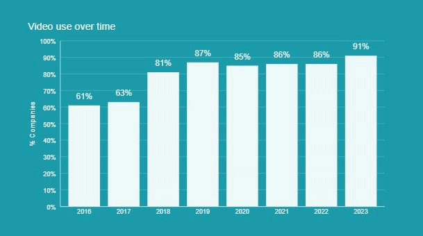 Videos are the most engaging type of content. They're a visual and entertaining way to share information. That's why they are so popular with marketers. In 2023, 91% of brands used video in their marketing strategies.