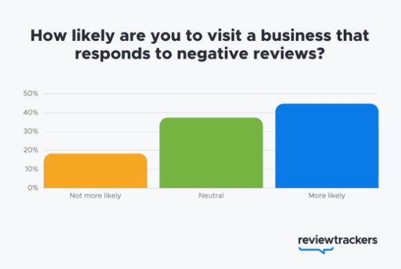 If you get a bad review, contact the customer as soon as possible to show that you care and want to address the issue. A recent survey found that over 40% of people are more likely to visit a business that responds to negative reviews.