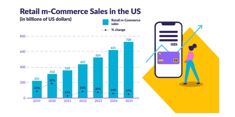 A lot of people shop on their phones. Mobile commerce in the US is estimated to be worth $621 billion in 2025. So, your emails and checkout process need to be mobile-friendly.