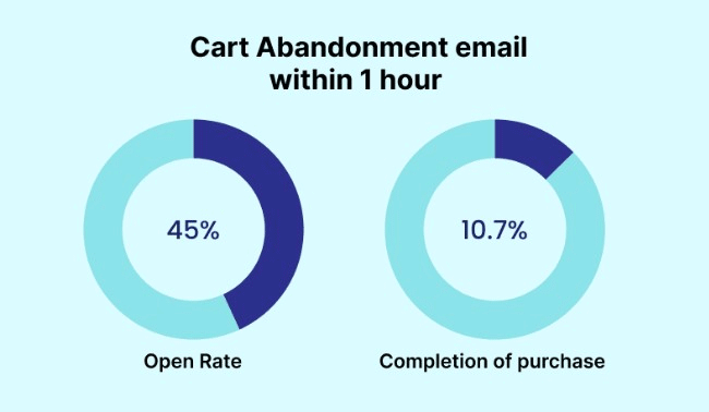 Timing matters. Sending a cart abandonment email within 1 hour can lead to a 10.7% purchase completion rate.