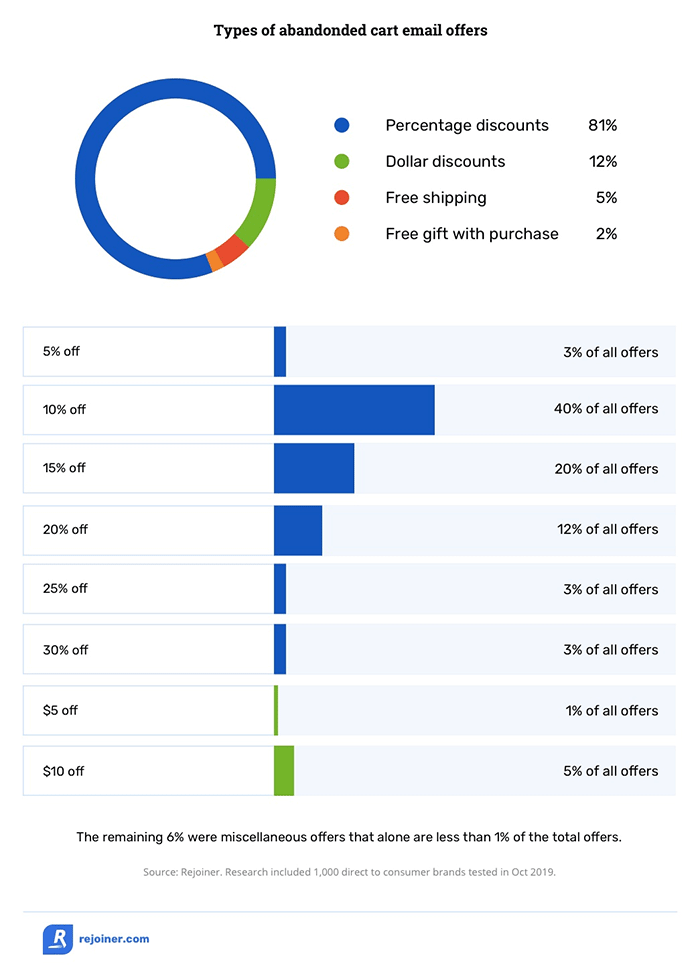 Discounts are a powerful weapon in any retailer's arsenal, but they should be used sparingly. After all, they cost you money, and savvy consumers may wait for discounts to be triggered before placing an order. Consider only offering a discount after sending one or two informational branded emails. Giving a discount should be your last resort.