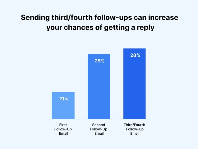 Sending multiple follow-up emails can boost your chances. A third follow-up email can increase the likelihood of a response by 33%.