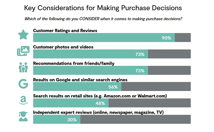 Customer reviews and testimonials are powerful. Around 90% of consumers consider reviews when making a purchase.