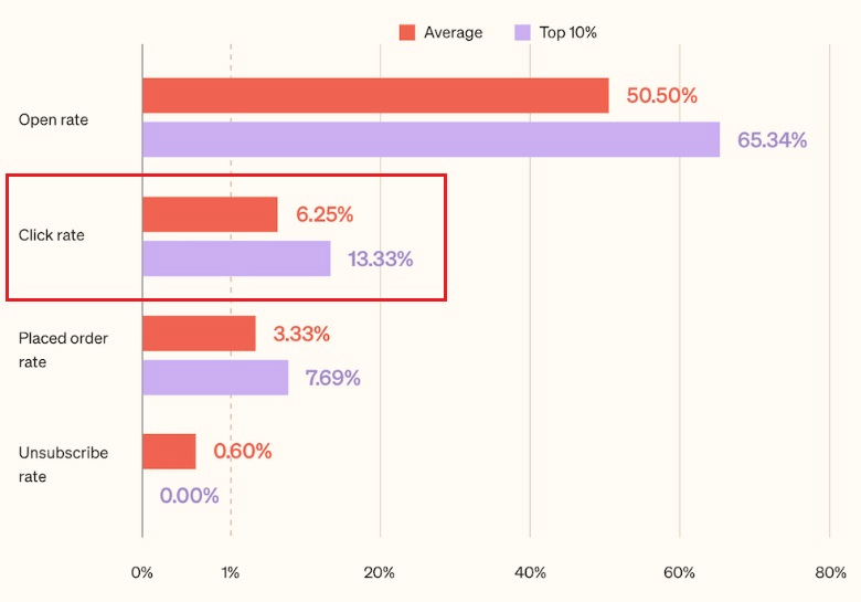 On average, 6.25% of recipients click through from abandoned cart emails back to their carts.
