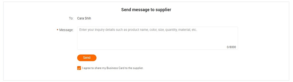 Alibaba’s on-site messaging feature is the easiest way to reach out to suppliers.