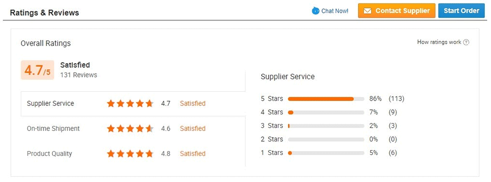 This index rates suppliers from 0-5 by judging aspects like product quality and presentation and metrics like transaction volume.