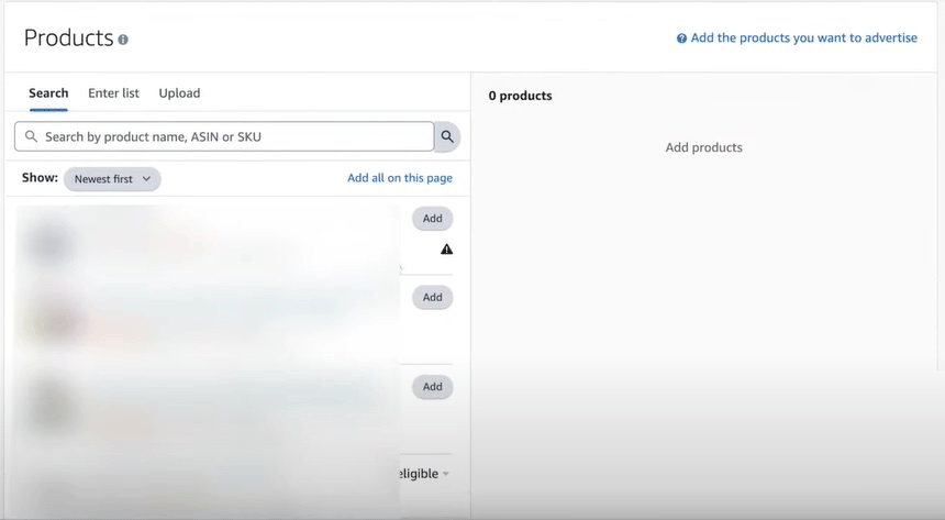Once you’ve named your ad group, it’s time to select the products for your first campaign. It’s always a good idea to start with a product that’s already performing well.