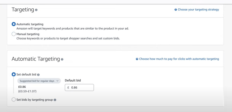 Next, you need to set targeting options that determine when your ads are shown to shoppers. Amazon offers two types of audience targeting for Sponsored Product campaigns.