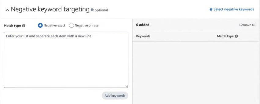 For example, if you sell affordable earbuds, you may want to stop your ads from appearing for high-end brand name keywords like “Apple” or “Samsung.” These keywords could be draining your ad budget without generating sales.