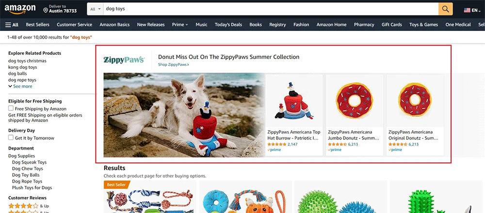 Sponsored Brands allow advertisers to promote their brand and multiple products in a banner-like ad format on top of the organic search results. These ads can include a custom headline, logo, and multiple product listings.
