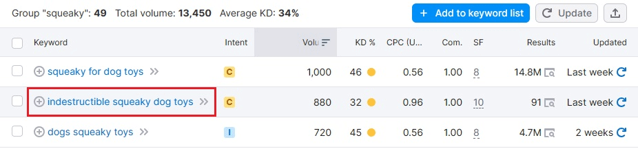 First, you can use keyword research tools. These tools give you a breakdown of the keyword competition, search volume, and other useful metrics: