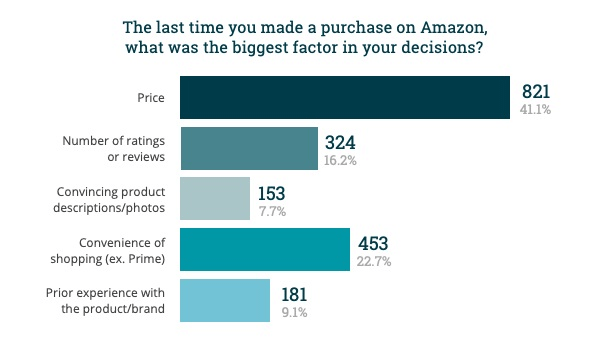 Customer reviews play a crucial role in the success of your Amazon advertising campaigns. Studies show that the number of ratings and reviews is the third most influential factor in purchasing decisions on Amazon. It’s more influential than product images and descriptions.