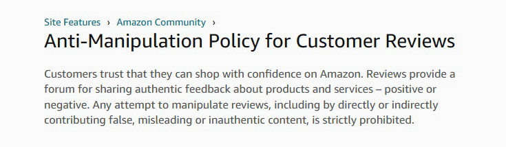 Amazon strictly prohibits fake reviews as they undermine the integrity of the marketplace and deceive potential customers.