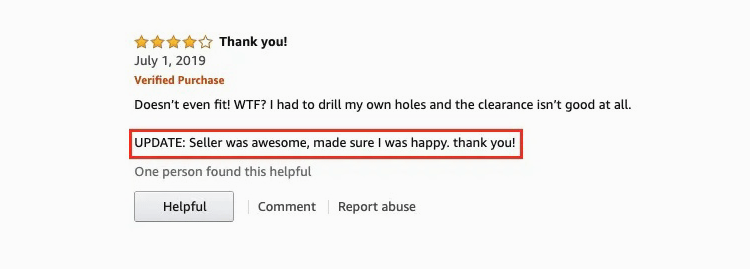 Amazon shoppers read positive and negative reviews. Demonstrating excellent customer service can help potential customers overcome barriers to making a purchase.