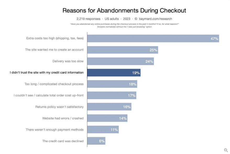 Security is a top consideration for selling online. In a recent survey, 19% of people revealed that they had abandoned a purchase because they didn’t trust the site with their credit card information:
