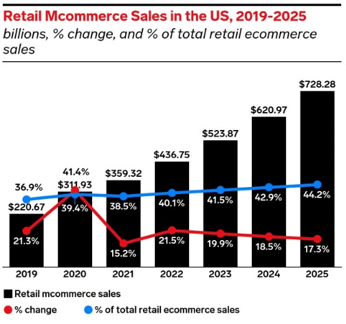 If your online store doesn’t look good and work well on mobile, you’ll lose out on a huge amount of sales. In the US, mobile now accounts for 41.5% of total retail eCommerce sales: