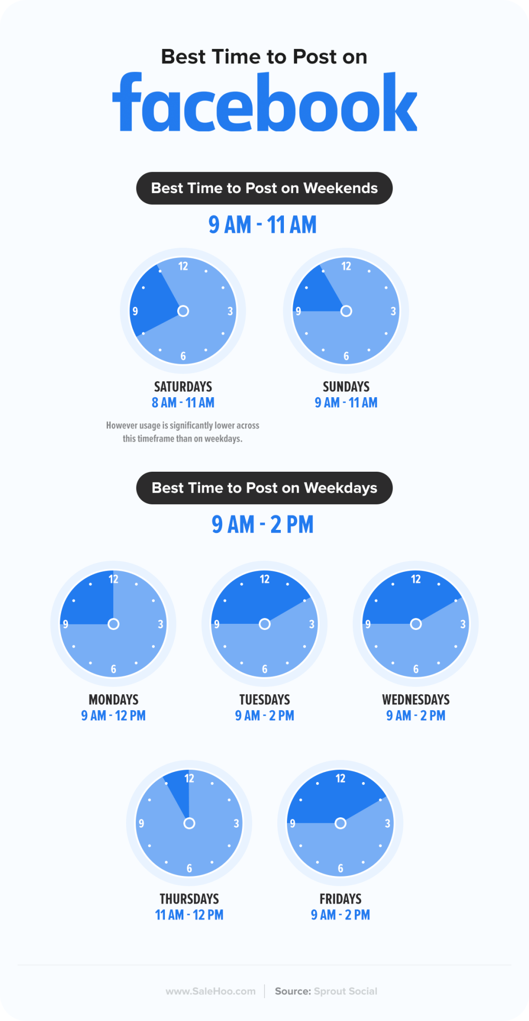 Overall, the global best times to post on Facebook are on Tuesday, Wednesday and Friday between 9.00 am and 2.00 pm. Sounds like people might be enjoying this platform the most when they’re not laden down with too much work, like you might expect on Mondays or as people scramble to finish things on Thursday.