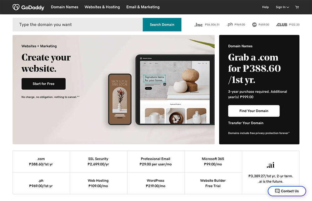 Getting started with GoDaddy is easy by signing up to its website. It offers a free trial that is followed by a price tag of around $360 yearly.