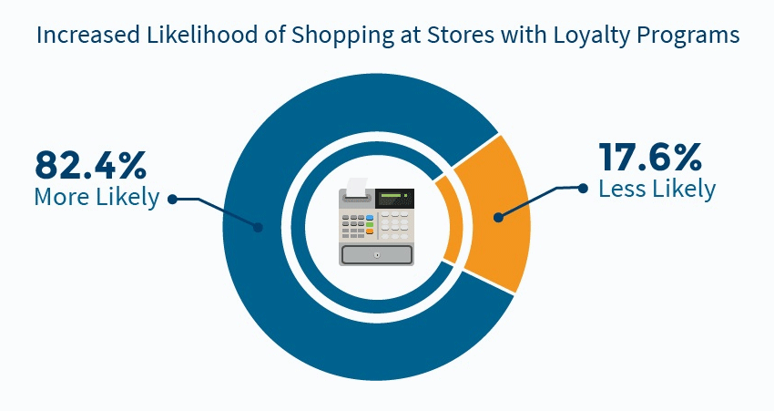 According to a recent study, consumers are 82.4% more likely to shop at stores with customer loyalty programs: