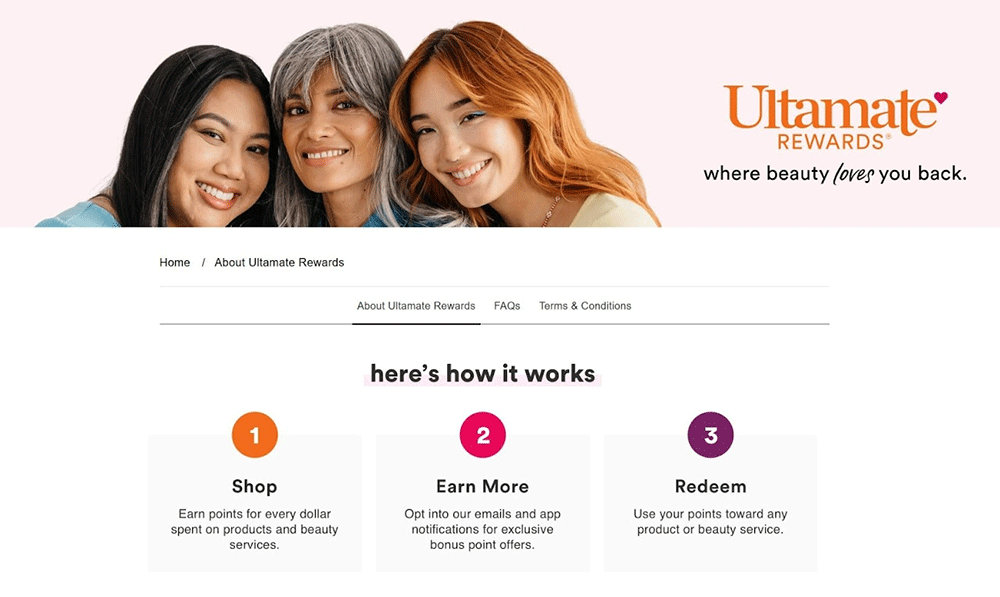 Ulta Beauty Rewards is a point-based loyalty program where customers earn points for every dollar spent. Customers can then redeem their points for discounts on future purchases.
