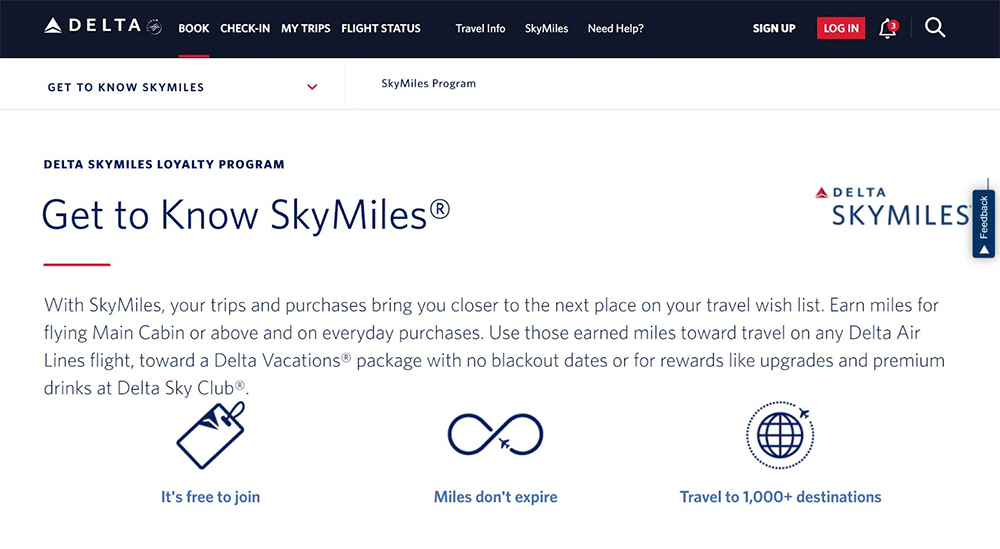 Delta SkyMiles is a tiered loyalty program for airline customers. Customers start at the lowest level and can move up the tiers by earning qualifying miles or spending a certain amount of money.