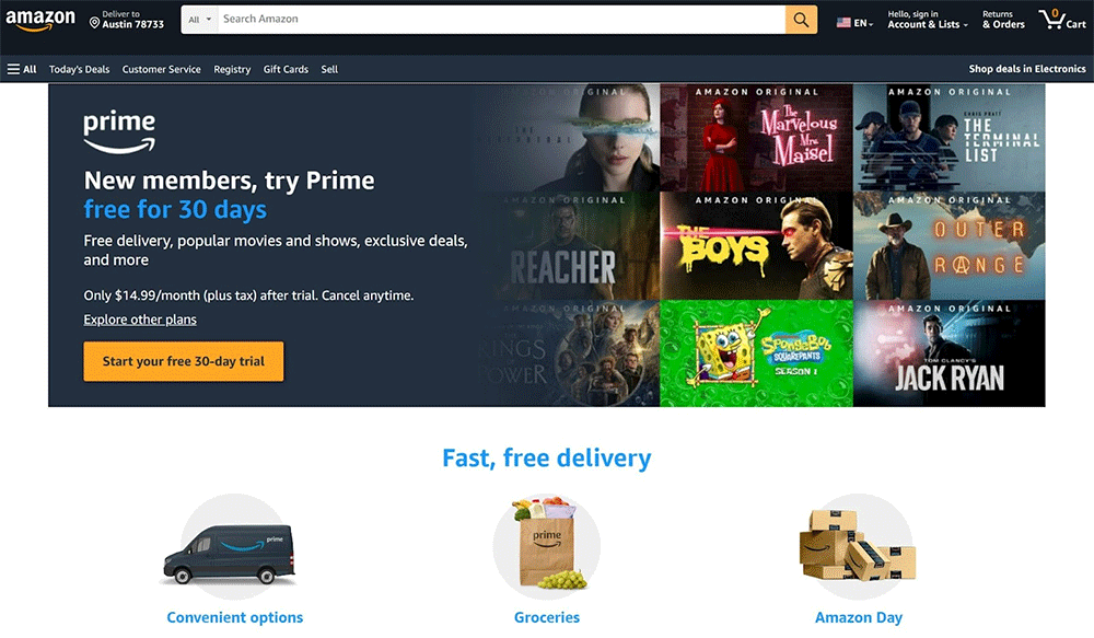 Customers pay a monthly or annual fee to access these perks and are likelier to shop with Amazon. According to a recent study, 42% of U.S. Prime members spend $100+ per month with Amazon.