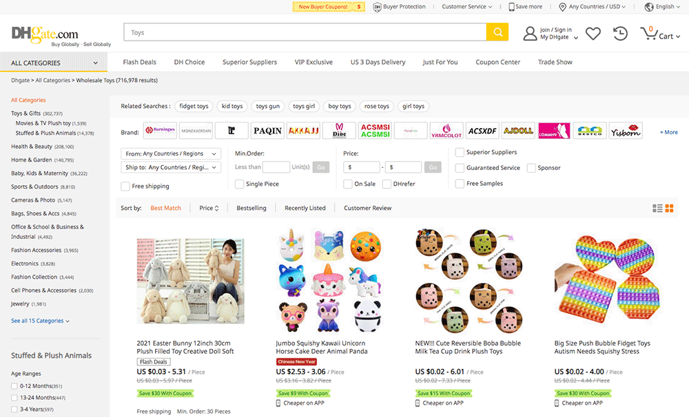 This makes DHgate a potential option for business owners who want to buy products for their store at wholesale prices or to find suppliers to dropship for them.