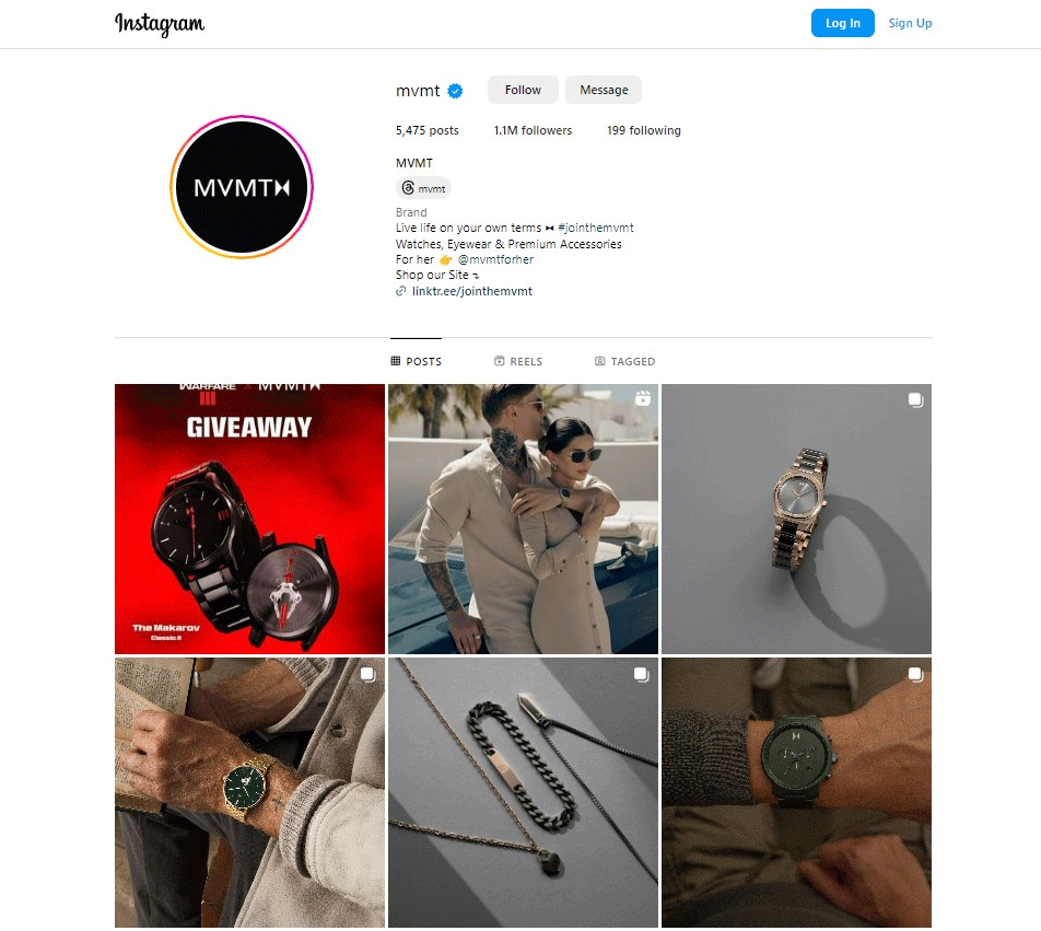 The brand also leverages influencer marketing across different relevant niches. From fashion to travel, MVMT has collaborated with a range of influencers to reach a wider audience.