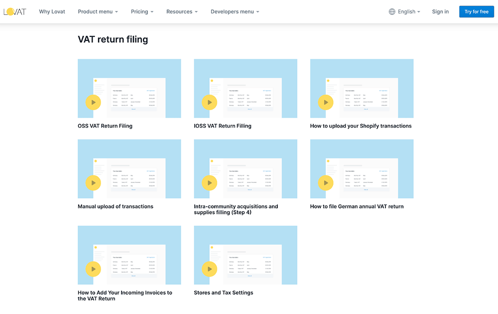 The Tax Academy offers a range of free courses provided by LOVAT to help you learn and simplify your taxes, and it also includes an entire section on VAT. It also offers Extended Producer Responsibility (EPR) Registration, for any businesses selling in Europe. This is becoming an important factor to include as more countries in the EU require reporting on packaging recycling.