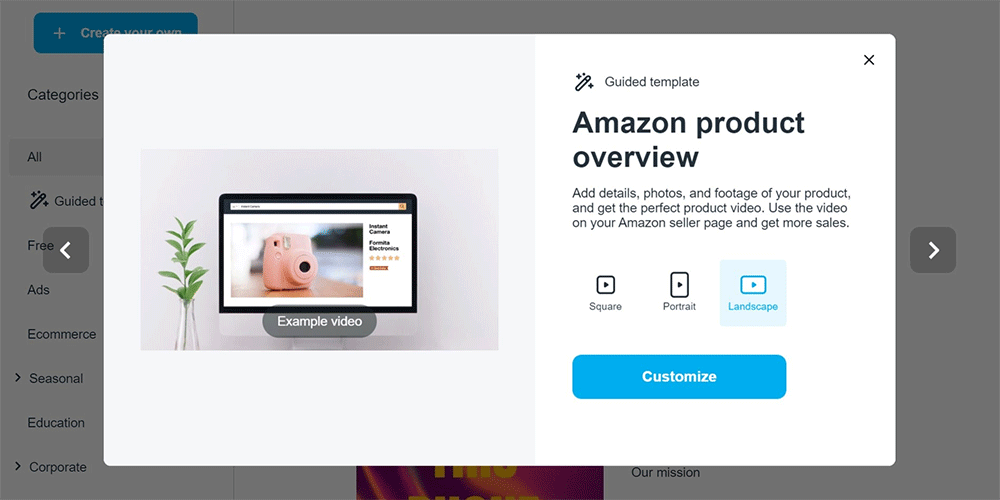 The interface is easy to use, and there are thousands of templates to base your video on. In addition, you can customize every template and add your branding to make your product videos unique.