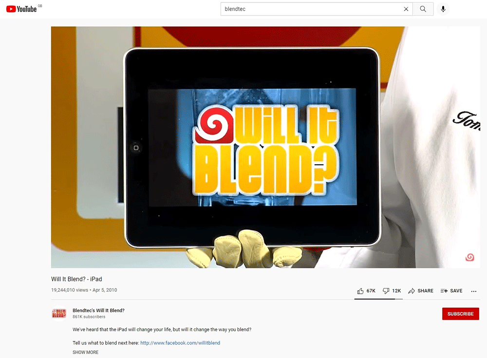 Let's kick things off with one of the most successful product video series ever - the Blendtec "Will it Blend?".