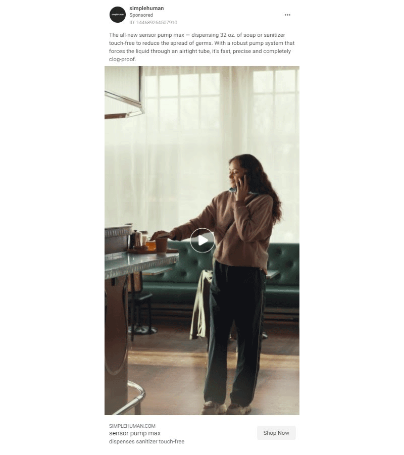 In the example above, simplehuman sells the image of a desirable home and lifestyle. The crisp lighting and high production values make the product look great, but the video sells much more than just a product.