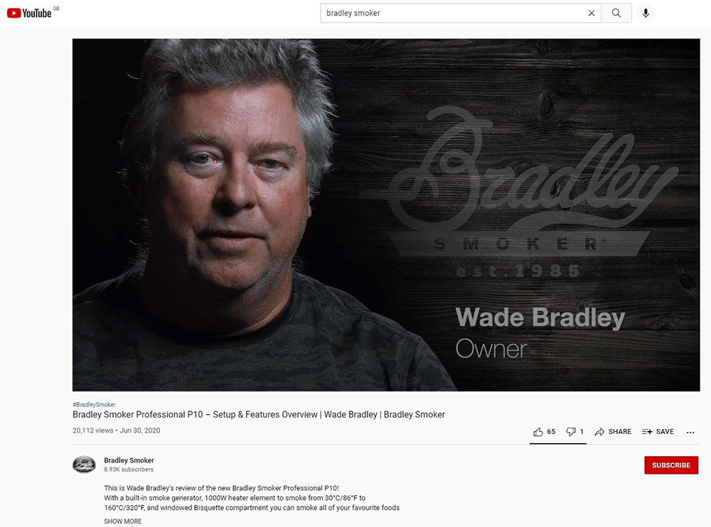 This example from Bradley Smoker ticks the boxes for several types of video content.