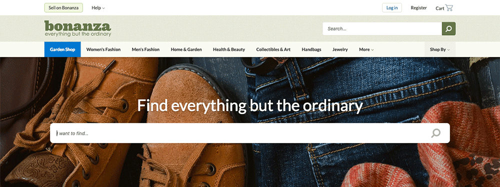 - Bonanza: This platform's slogan is "Find everything but the ordinary": Any quirky or unique-style items are great here. You're allowed to sell a wider variety of wholesale goods, and it's becoming a very popular network. We'll talk more about Bonanza in the next section.