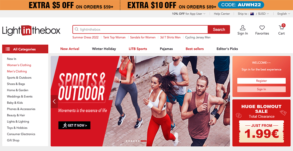 - Women's clothing and apparel (dresses, tops, bottoms, active wear, etc.)