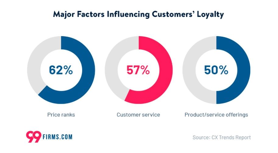 Happy customers often become repeat customers. If they have a positive experience, they’re more likely to come back next time they need something you offer. A recent report found that customer service was the second most influential factor for customer loyalty: