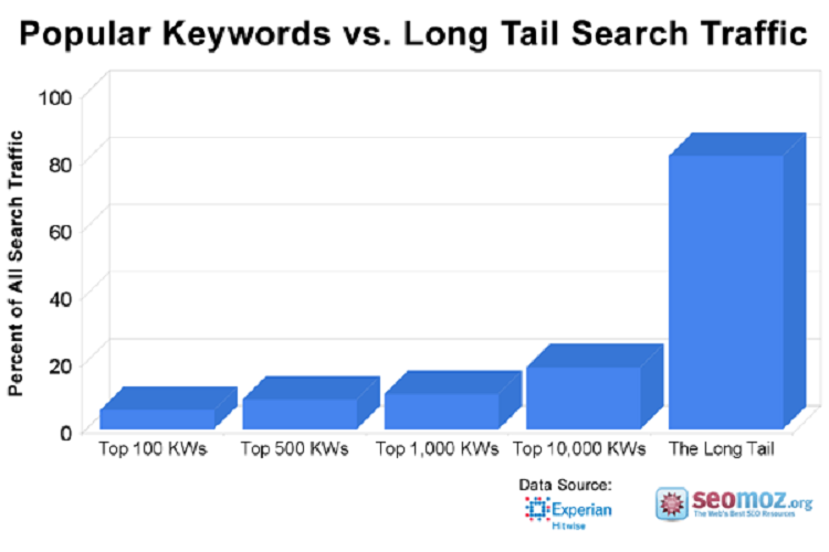 The long tail of a search term accounts for more than two-thirds of unique visits to any given site, so content that includes a specific long-tail keyword (“keyword phrase” may be the more appropriate term) will rank more easily.