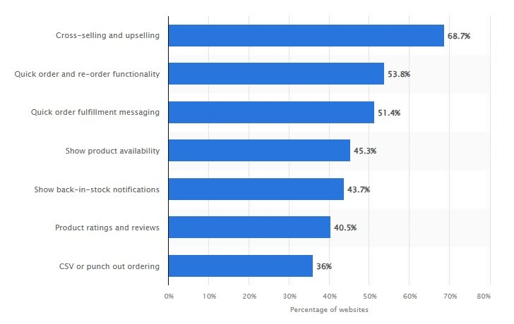 Cross-selling is one of the most used eCommerce sales tactics. In 2019, 68.9% of businesses used cross-selling and upselling on their websites: