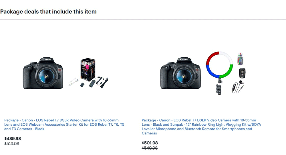 Best Buy is great at this. Say you’re browsing for a new digital camera. If you browse Best Buy, you’ll often see deals where you get a camera, a memory card, and a case for a bundled price. Shoppers find bundle deals compelling because they feel they get the complete package and save money.