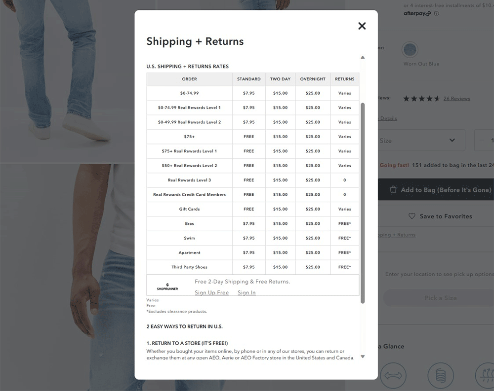 American Eagle is very clever at this. Shoppers need to spend $75+ to qualify for free shipping. And most of their products are in the $30-$40 range. So you need to buy at least two items to qualify for free delivery.