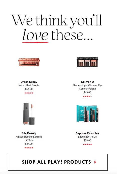 Sephora aces this strategy. After you buy something, they’ll send emails showcasing products that align with your recent purchase. And because they keep it relevant, it doesn’t feel spammy. The follow-up emails feel personalized and thoughtful. If you get your follow-up emails right, you can boost sales and build a stronger relationship with your customers.