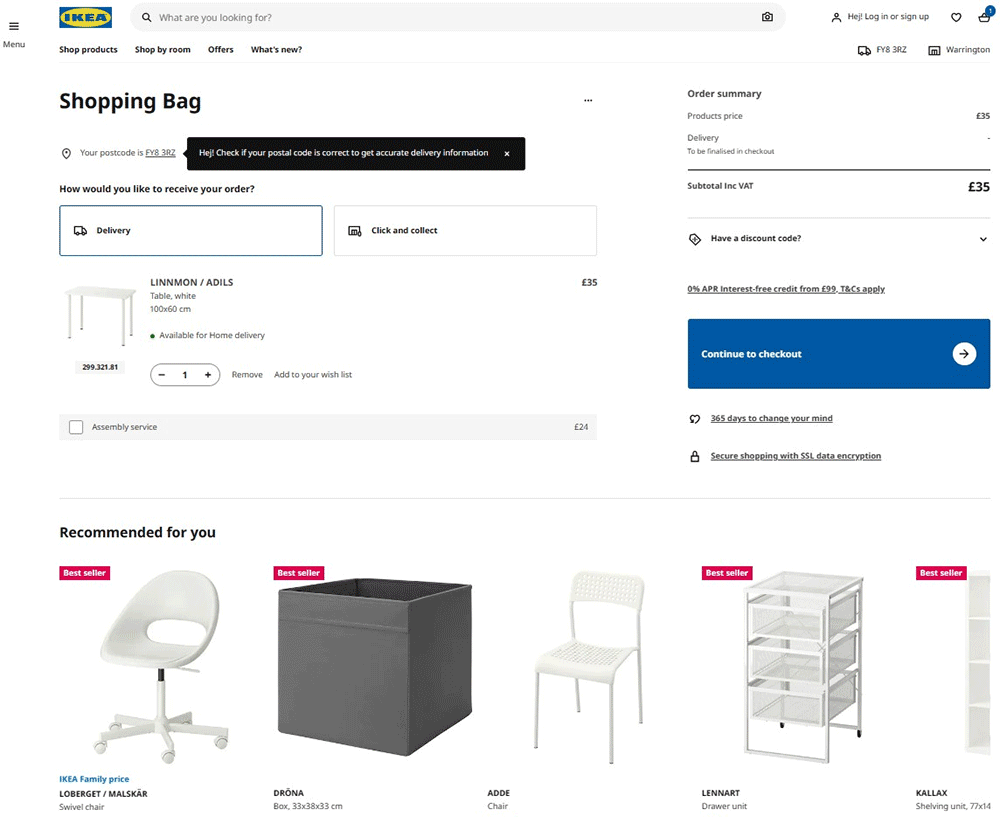 IKEA are pros at this type of cross-selling. When you head to your cart, IKEA often highlights a few related products. They really focus on the visuals. Shoppers often find themselves clicking on the related product and adding it to their cart before they complete the checkout process.