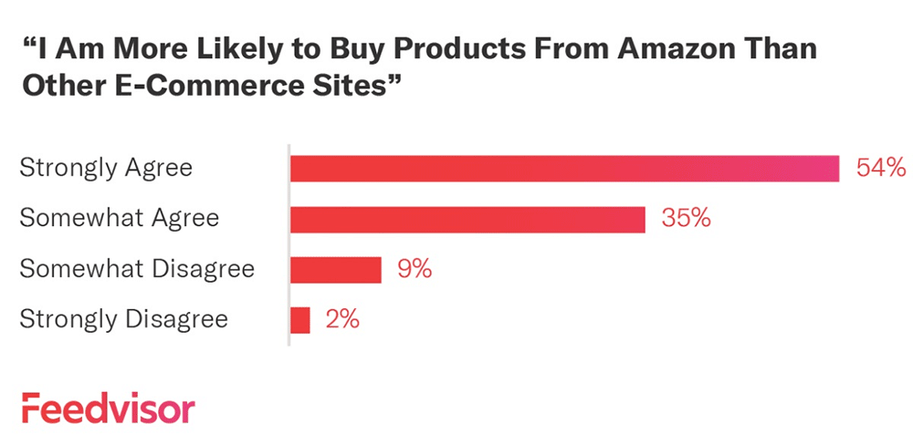 For example, 89% of online shoppers prefer to buy products from Amazon than other eCommerce sites: