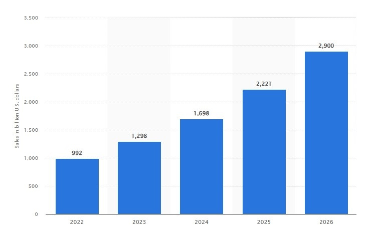Value of social commerce sales worldwide from 2022 to 2026: