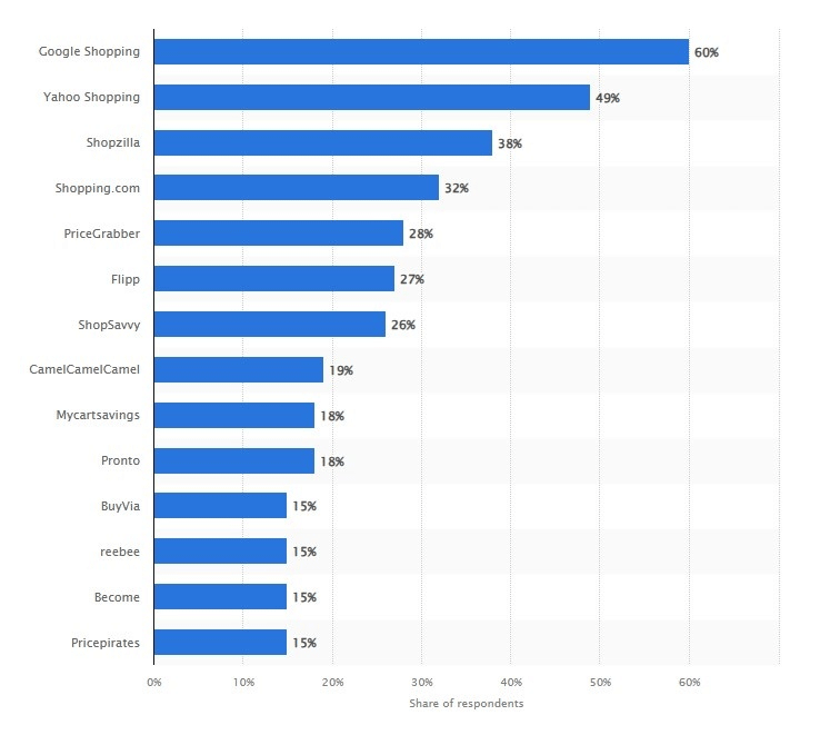 Leading price comparison portals ranked by brand awareness in the United States in 2022: