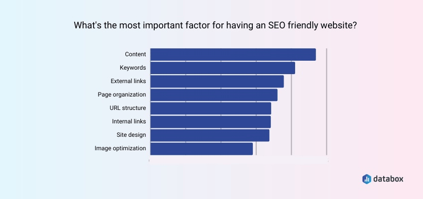 According to a survey of SEOs by Databox, content is the most important element of an SEO-friendly website: